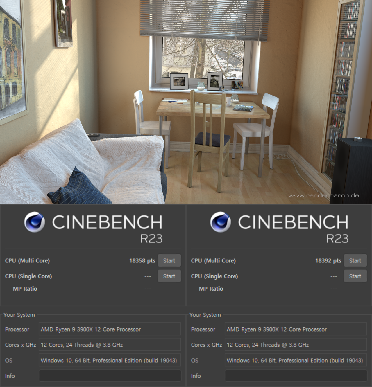 CINEBENCH R23으로 에이서 프레데터 APOLLO 튜닝램 XMP 클럭과 오버클럭 후 성능을 비교해봤습니다.