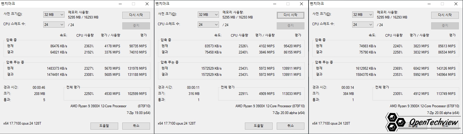 7-Zip 벤치마크로 압축 테스트를 진행한 결과입니다.