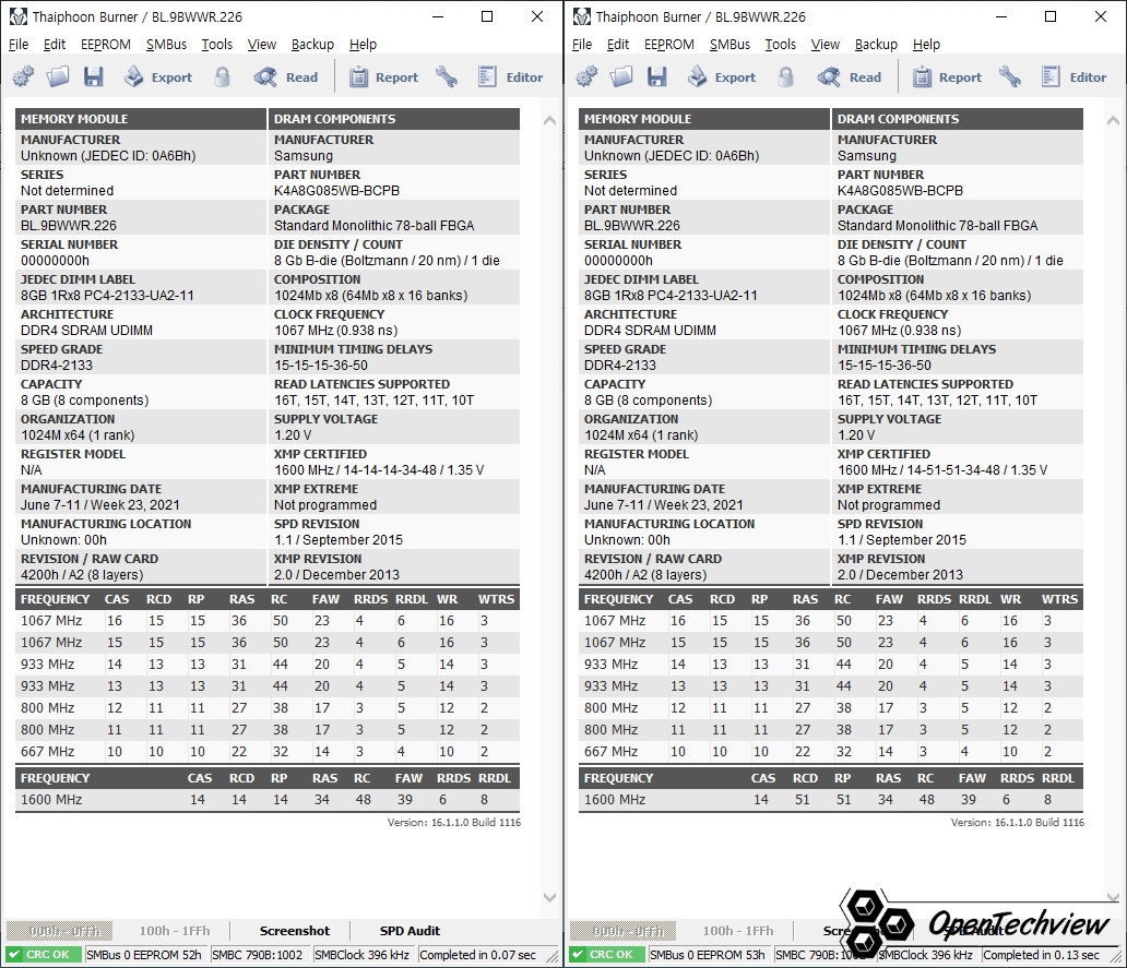 타이푼 버너로 에이서 프레데터 APOLLO 튜닝램의 메모리 모듈을 확인해봤습니다.