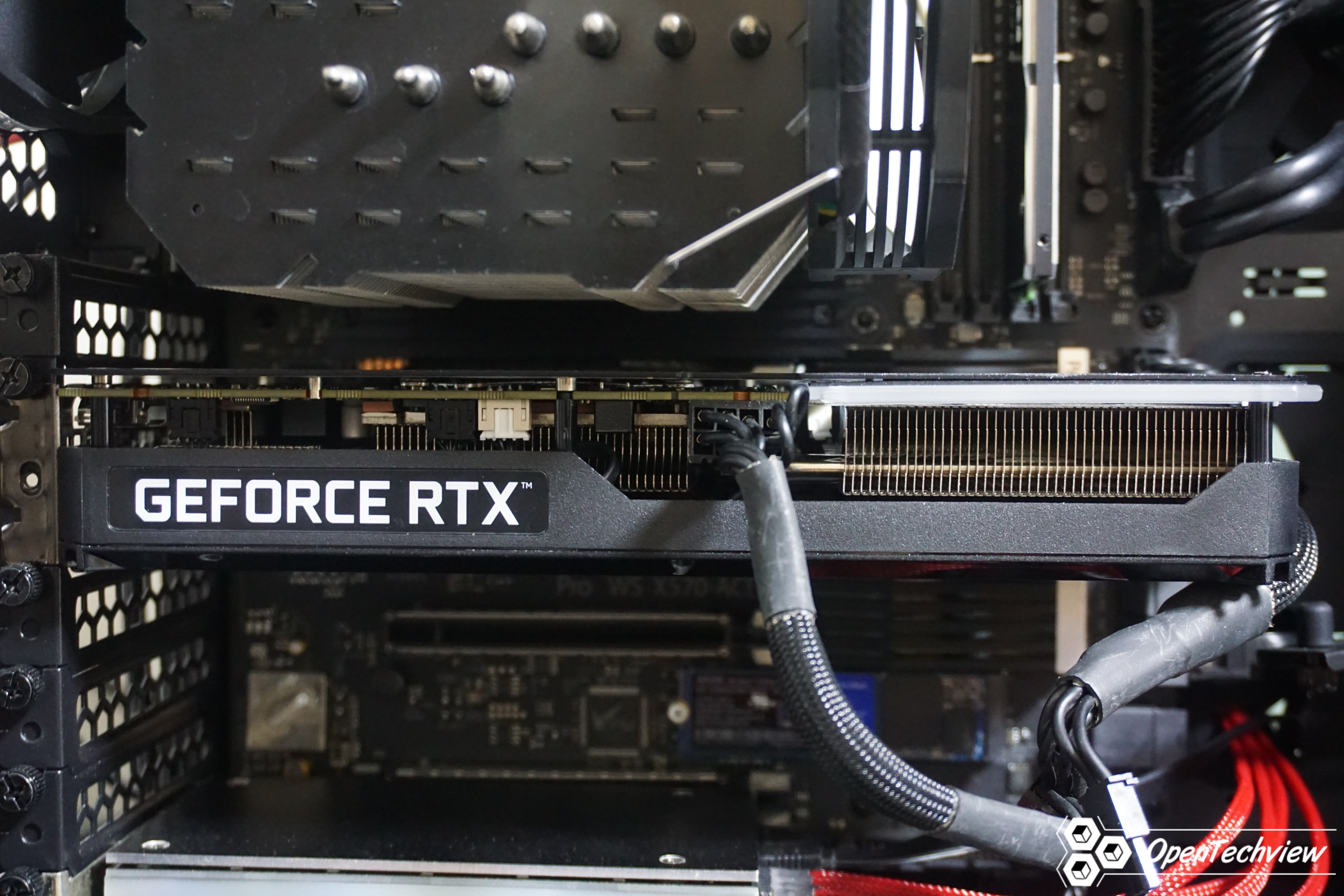 메탈릭한 느낌과 깔끔하게 떨어지는 하우징으로 그래픽카드만 튀어보인다는 느낌없이 주변 컴포넌트랑 잘 어울리는 모습을 보여줬으며 제로팬 모드로 GPU 유휴상태에서는 팬의 소음 없이 조용하게 PC를 활용할 수 있습니다.