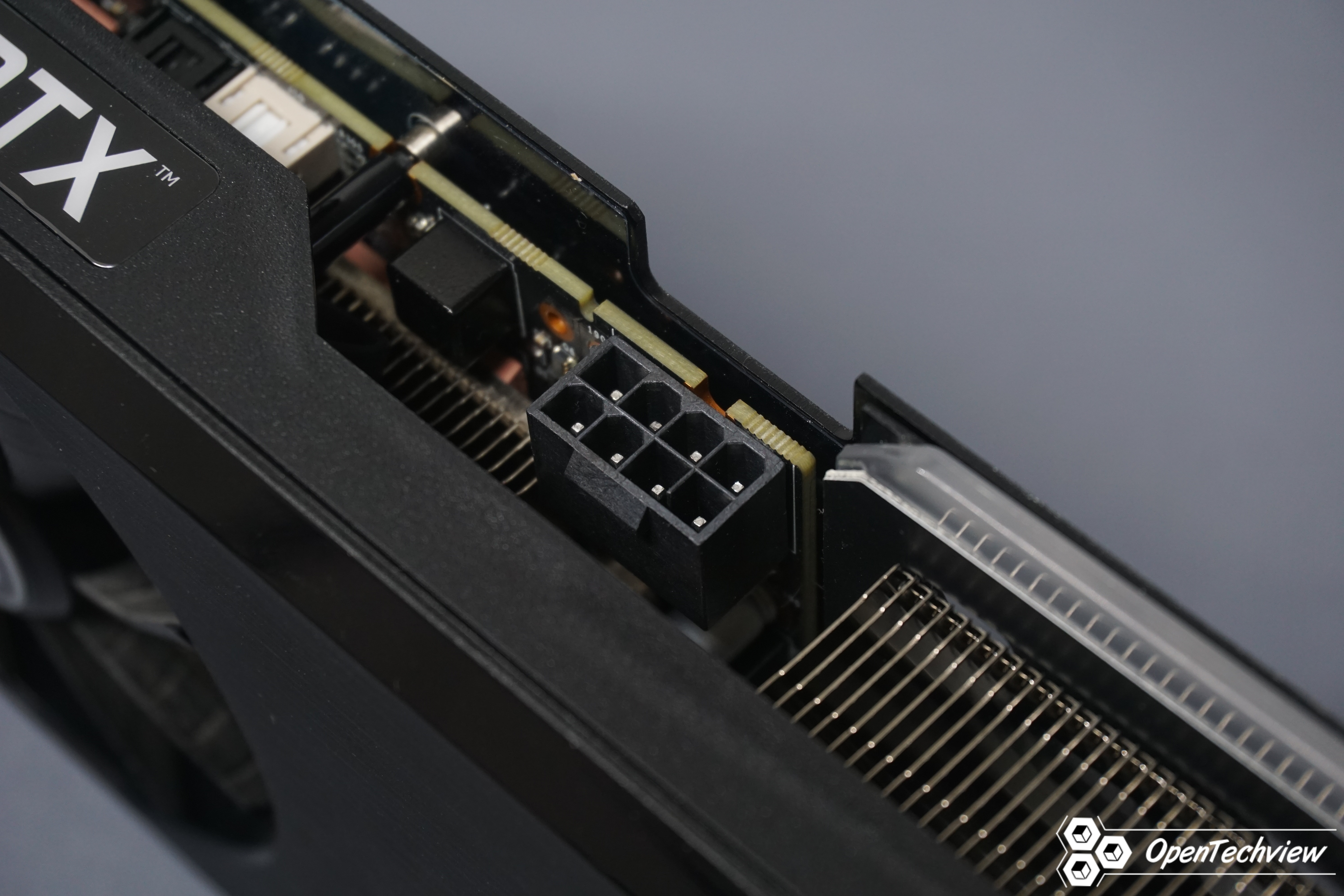 그래픽카드 전반적으로 깔끔한 느낌을 주긴하나 PCI보조전원의 위치로 인해 깔끔한 모습이 조금은 저해되는 느낌을 받았습니다.