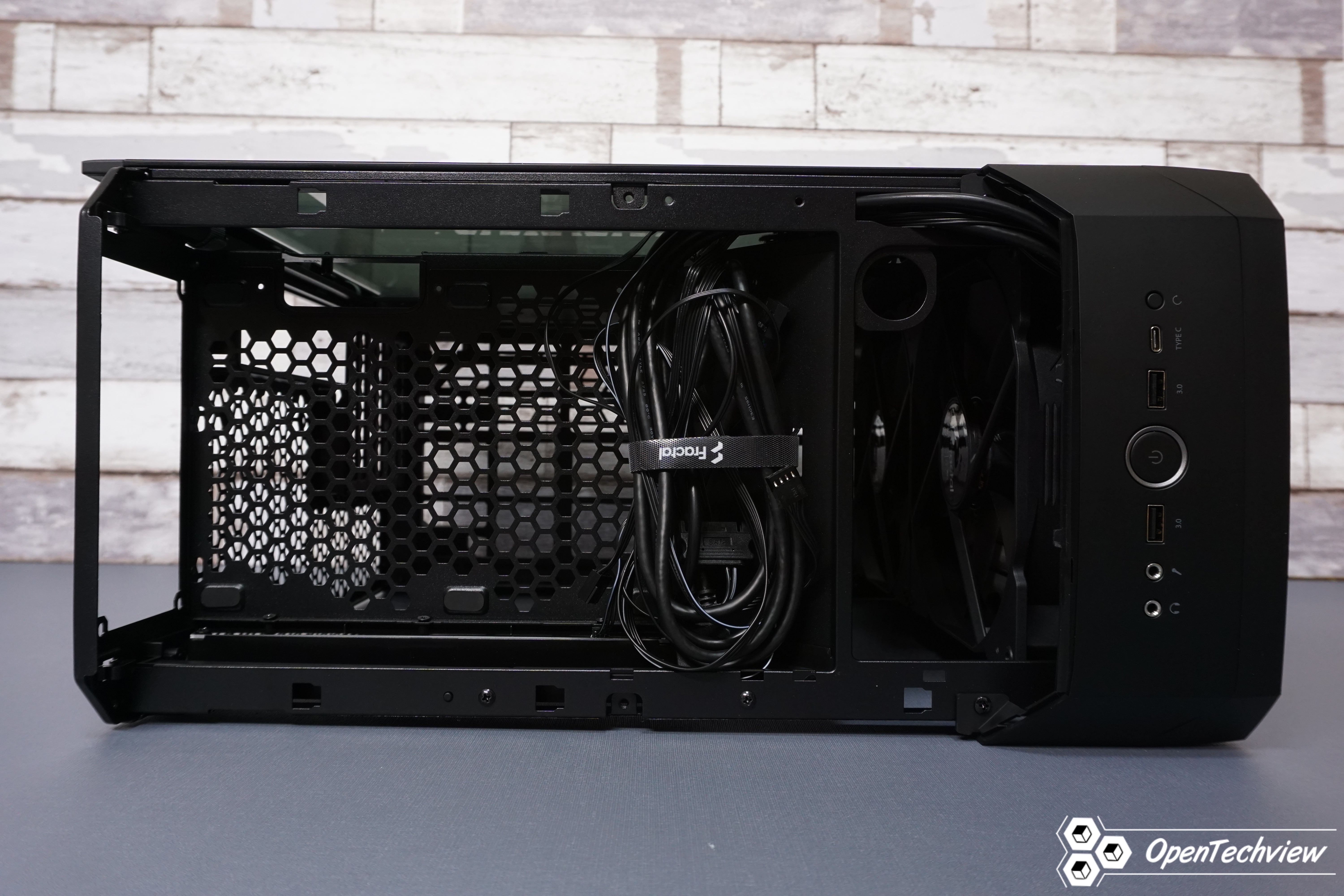 이러한 설계덕에 후면으로 데워진 공기를 배출하는 타워형 공랭 CPU쿨러와 뛰어난 조합을 보여줄 수 있으며 케이스 내부 전반적인 공기 흐름이 전면을 통해 후면으로 배출되는 만큼 공랭식 시스템 구성에 가장 적합한 케이스로 판단됩니다.
