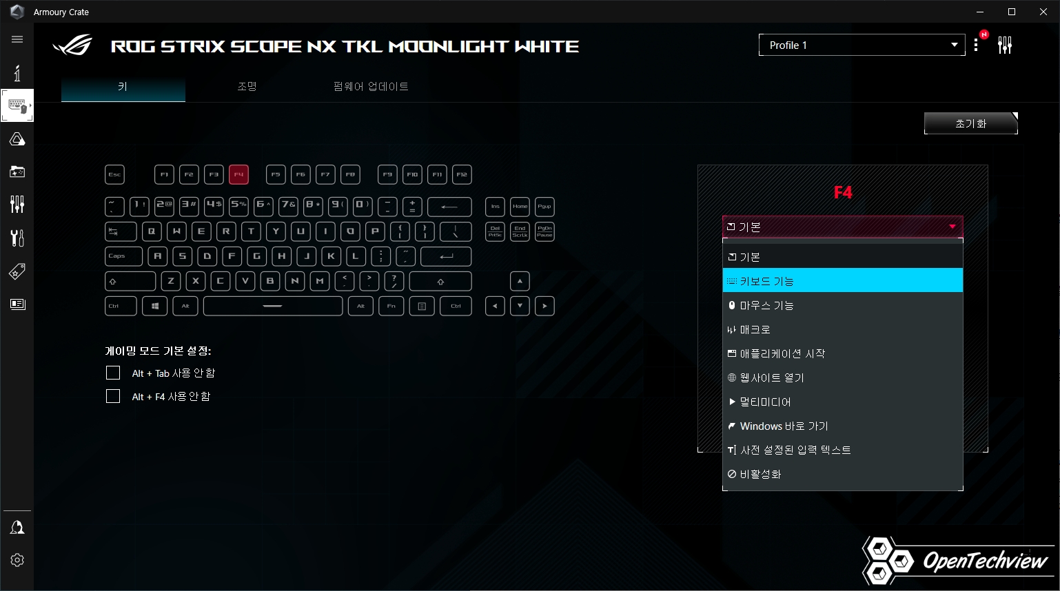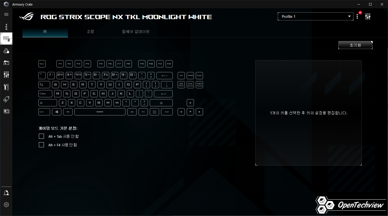 ASUS의 경우 타사 키보드와 달리 자사 게이밍기어, PC컴포넌트 등을 통합소프트웨어로 운용하는 만큼 기능적인 면에서도 부족함 없는 기능을 보여줬습니다.