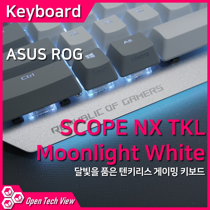 오늘은 화이트 컨셉으로 게이밍기어 라인업을 잡은 Moonlight 시리즈 제품들 중 키보드에 해당하는 ASUS ROG STRIX SCOPE NX TKL Moonlight White 키보드를 살펴보도록 하겠습니다.