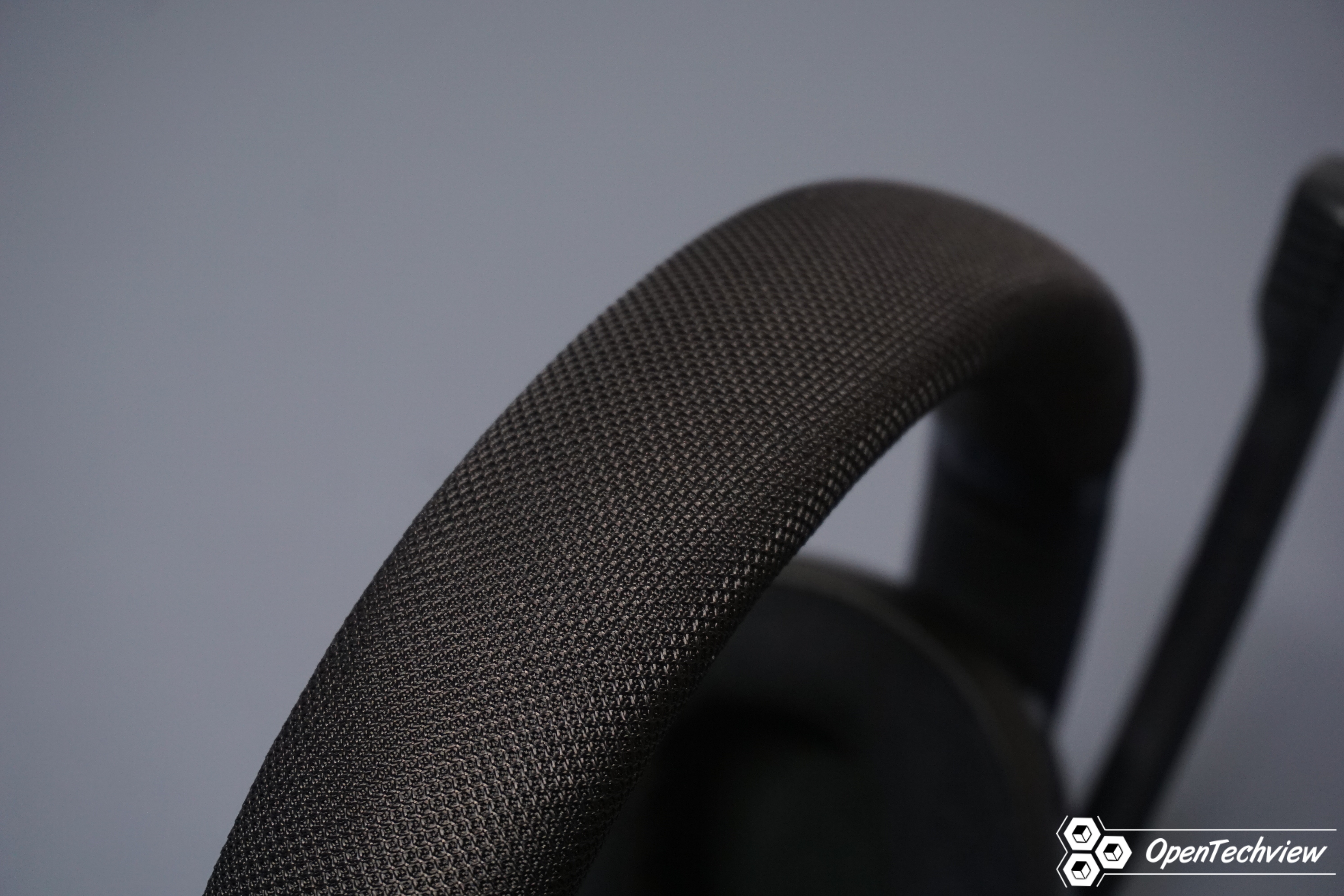 헤드밴드도 매시타입의 소재가 적용되었으며 부드러운 쿠션감과 고급스러운 느낌을 함께 전해줬으며 두툼한 쿠션감덕에 머리위를 헤드셋을 누른다는 느낌이 들지 않았습니다.