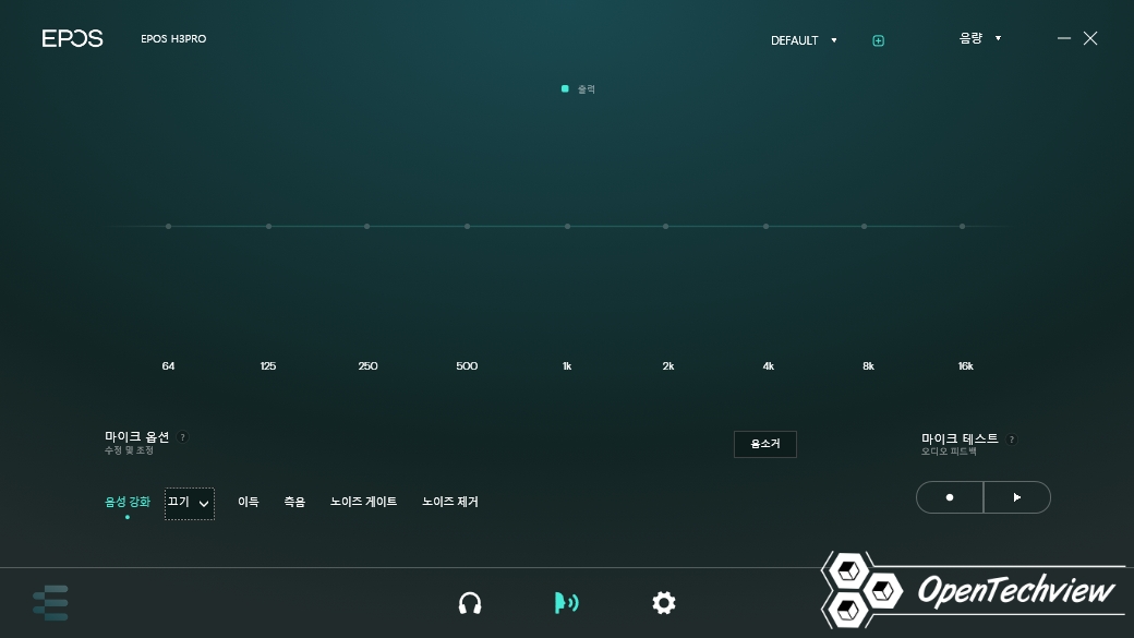 EPOS Gaming Suite 프로그램은 크게 헤드셋 음질, 마이크의 음질을 설정할 수 있는 탭으로 나뉘며 이퀄라이저는 +-6dB에 걸쳐 조절할 수 있습니다.