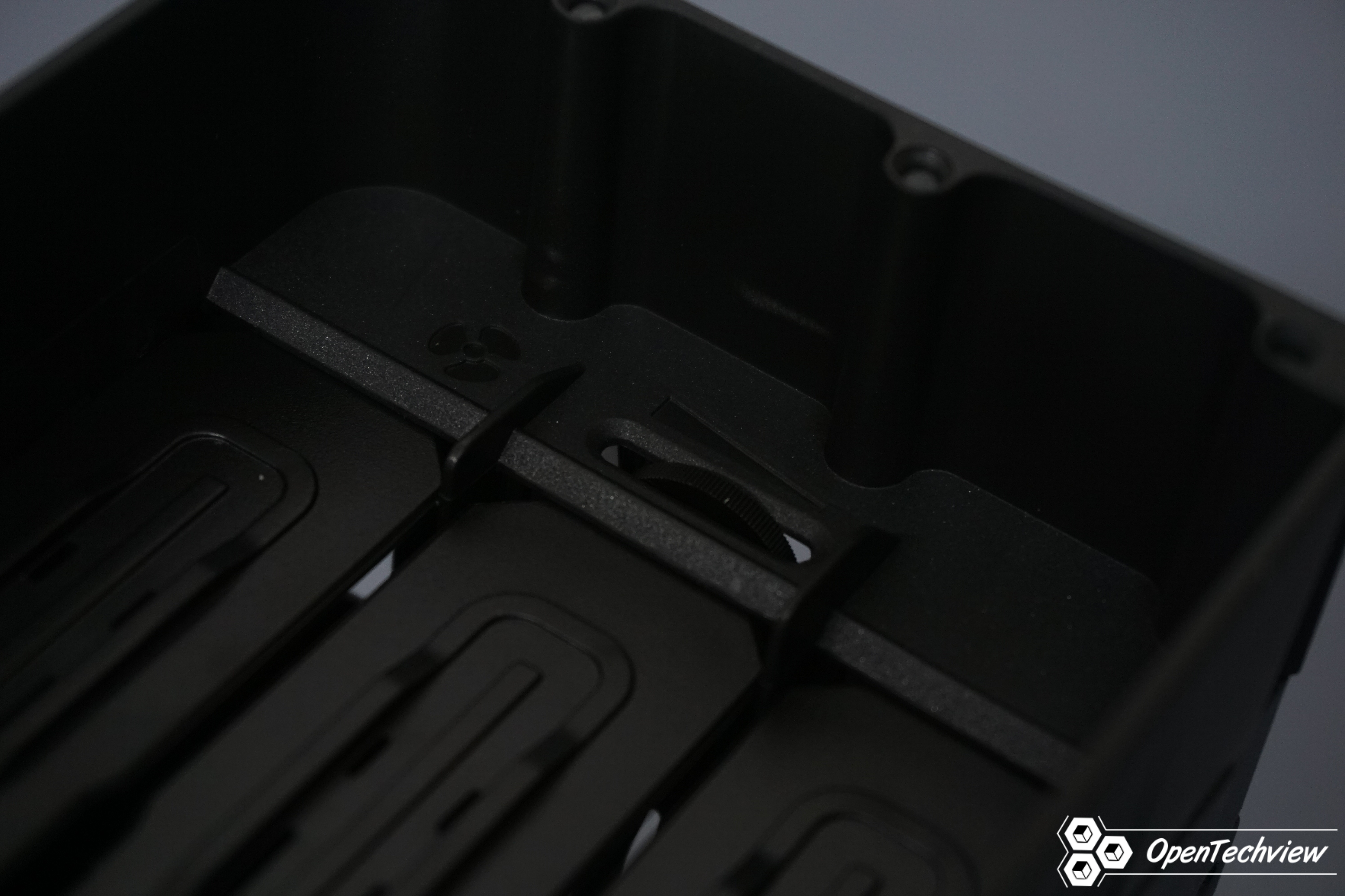 무나사 툴리스방식의 저장장치 매커니즘으로 2x5.25인치 트레이에 3개의 HDD를 수납할 수 있습니다.