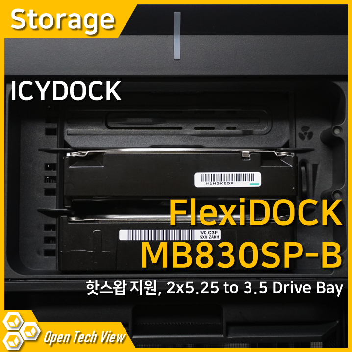 PC케이스 중 현재도 5.25 트레이를 지원하는 케이스가 있는데요, 오늘은 2x 5.25인치 트레이에 3개의 3.5인치 저장장치를 연결할 수 있는 ICYDOCK의 FlexiDOCK MB830SP-B(이하 MB830SP-B)을 소개해볼까 합니다. 보편적인 케이스가 그러하듯 5.25인치 트레이는 케이스 전면에 위치하곤 하는데요, MB830SP-B을 5.25 트레이에 장착하고 툴리스 핫스왑 방식의 트레이로 사용할 수 있어 매우 간편한 HDD 교체 용이성을 보여줄 수 있습니다. 보편적인 5.25인치 트레이를 지원하는 케이스가 최소 미들타워~ 빅타워급(또는 서버급)이므로 많은 수의 저장장치를 장착하면서도 유지보수를 꾸준히 하는 유저의 입장에선 더할나위 없이 편리한 제품이라고 볼 수 있습니다.
