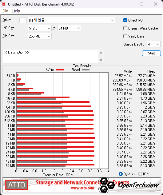 먼저 ATTO Disk Benchmark를 진행한 결과입니다.