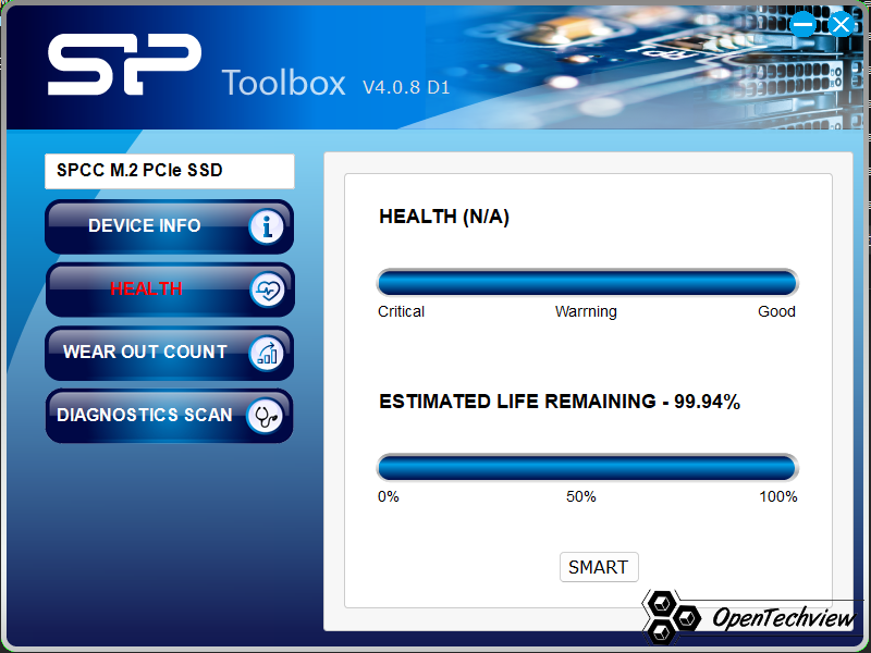 실리콘 파워 전용 소프트웨어도 지원하는데요, SP Toolbox는 실리콘 파워의 SSD를 모니터링할 수 있으며 TBW(Total Bytes, Writen)도 볼 수 있어 NVMe SSD의 잔여 수명을 정량적으로 확인할 수 있습니다.