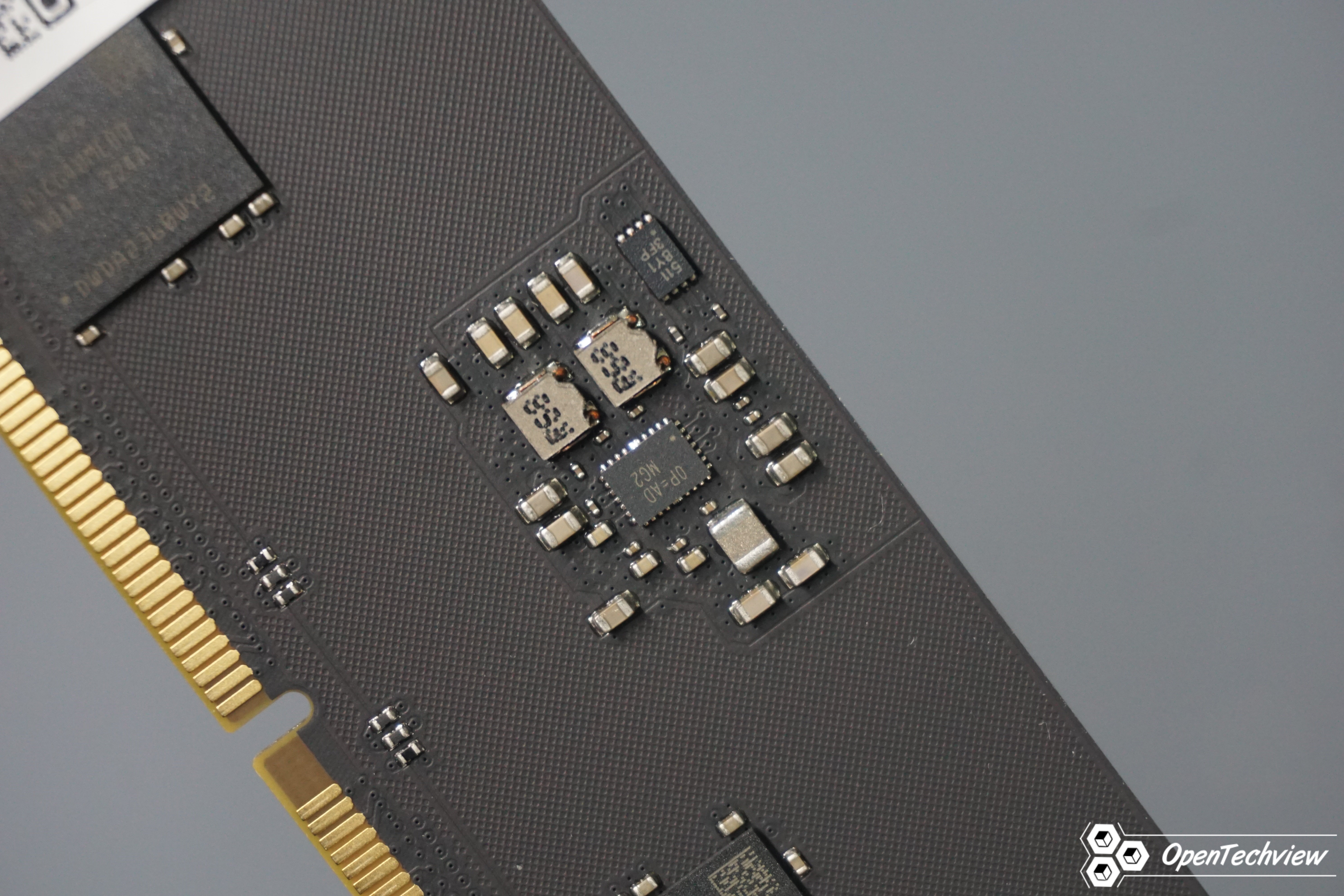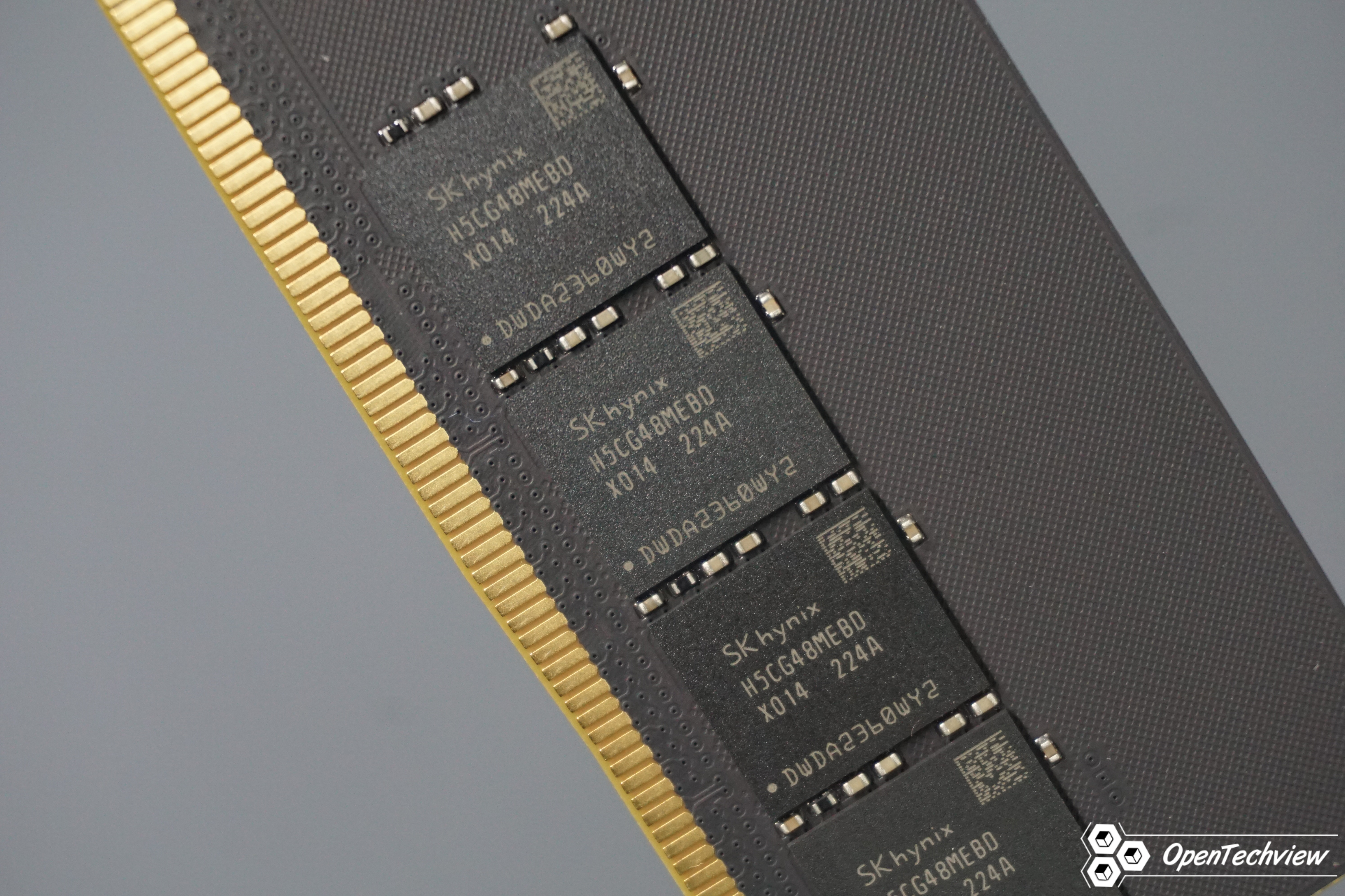 GEIL PRISTINE V 메모리에 적용된 DDR5 메모리 모듈은 하이닉스의 메모리가 적용되었습니다. 모듈 하나당 2GB 구성으로 메모리 제품 당 8개의 모듈이 부착되었습니다.